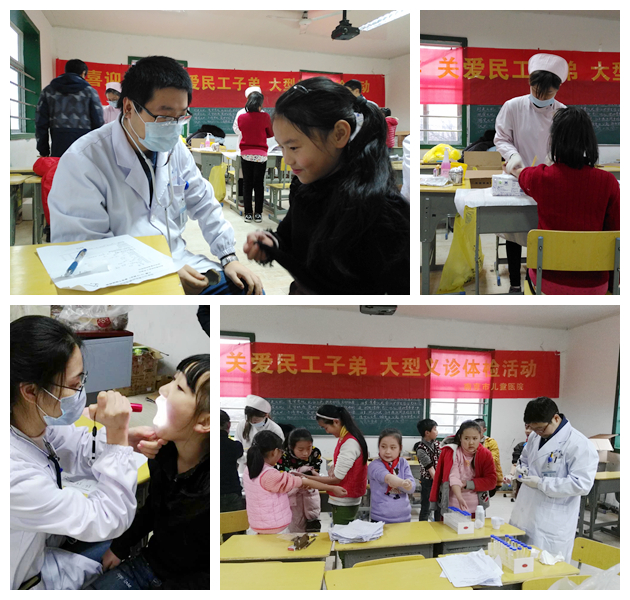 1月5日上午,好看视频 组织急诊科、儿童保健科、检验科的9名医护人员来到南京市宁燕外来工子弟小学开展“喜迎新年 关爱打工子弟”大型体检义诊活动,免费为60名外来工子弟进行体格检查包括(内科检查、外科检查)以及血尿常规等体检,在寒冷的冬日里给孩子们送去特殊的新年礼物。(检验科)
